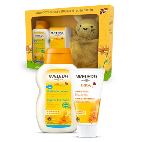 Los dos productos esenciales para el cuidado del recién nacido en un solo Set: Baño de Crema 200ml., Crema Pañal 75 ml. Además con un doudou 100% algodón de regalo. Cuidado 100% natural con ingredientes BIO.